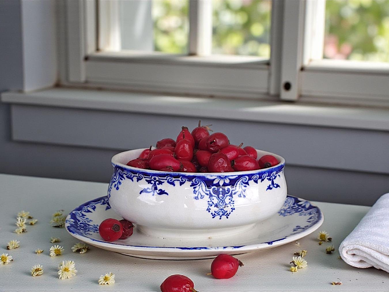 Die Oberfläche trägt jenes feine Craquelé, das nur entsteht, wenn Zeit und Temperatur ihre Spuren schreiben. Das tiefe Kobaltblau – in weichen Ornamenten über den Rand gezogen – bildet einen Kontrast zum warmen Elfenbeinton der Glasur. Sie misst etwa 22 cm in der Länge, 18 cm in der Breite, 8 cm in der Höhe und fasst rund 500 ml. Die kleine Schale sitzt fest auf ihrem passenden Unterteller – wie zwei aufeinander abgestimmte Töne in einer alten Melodie.